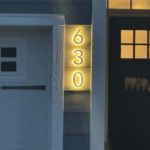 Sleek, modern digits float off the wall, creating a soft halo that catches the eye and improves street readability. With expert installation, we carefully size, space, and align each character so your address looks effortlessly refined from every angle.